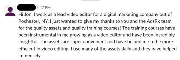 For the record...I've personally edited 1000's of ads myself and trained DOZENS of video editors, script writers & videographers from SCRATCH...